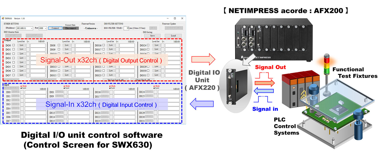 - SWX630:Software to control Digital I/O unit (AFX220) of NETIMPRESS acorde
